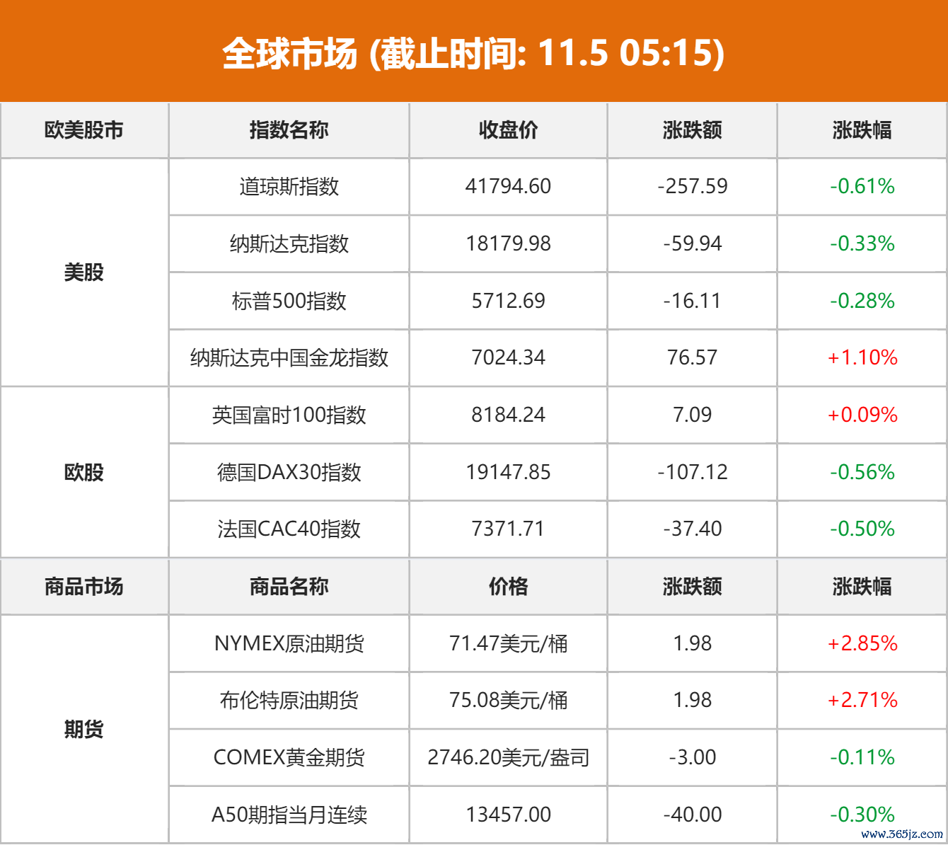 美股:美股三大指数集体收跌,标普500指数收跌16.11点,跌幅0.28%,报5712.69点。道琼斯工业平均指数收跌257.59点,跌幅0.61%,报41794.60点。纳指收跌59.93点,跌幅0.33%,报18179.98点。