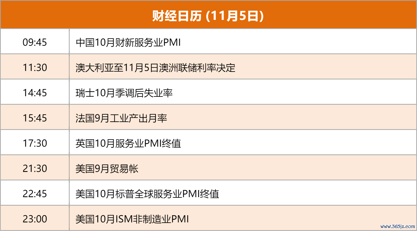 美债:周一(11月4日)纽约尾盘,美国10年期基准国债收益率下跌7.27个基点,报4.3109%,全天处于下跌状态,北京时间23:19刷新日低至4.2606%,随后一度在02:16回升至4.3271%。两年期美债收益率下跌3.31个基点,报4.1723%,全天处于下跌状态,23:18刷新日低至4.1268%,随后在02:02(美国财政部披露三年期美债拍卖后不久)回升至4.1827%。